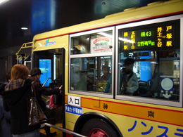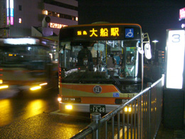 横浜駅のターミナルを20時8分に出発するバスに乗り、戸塚駅に向かう。
