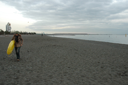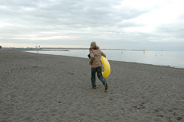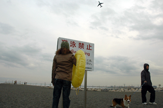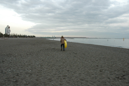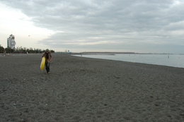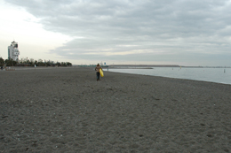 湿った砂に足を取られつつジョギングを数分。 かなり体も温まってきた、その時!