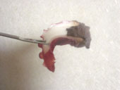 | 刺したピックを見つめてひるむ高瀬さん |