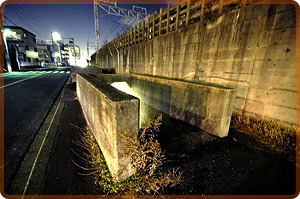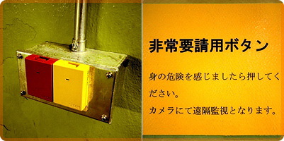 地下道内数箇所に設置されていた非常要請用ボタン。地下道環境の苛酷さをしのばせるアイテムだ。