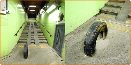非常にバリアフルな階段。地下歩道はこうではなくてはならない。