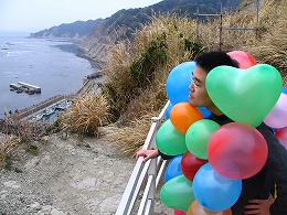 そのビジュアルから普通の市民社会ではなかなか受け入れてもらえそうにない風船マン。今回も崖を訪れたが、美しい景色は普通の人も風船マンも分け隔てなく癒してくれる。