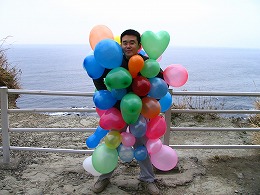 そう、安全ピンで風船を服に留めれば、割と気軽に風船マンだ。それほどたくさんの数がいるわけではないが、風船に囲まれている感じはしっかりと味わえる。