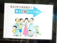 駅を降りて南口を出ると、さっそく「長谷川町子美術館」への案内板がある。これこそ、巡礼者にはもっとも必要なものだ。アイラブサザエ! しかも、こっちでいいのかなーとちょっと不安に思いかけると、不動産屋の店先に「長谷川町子美術館まであと440メートル」とサザエさん一家がにこやかに微笑むA4大の案内紙が貼ってある。もう巡礼者大歓迎の町である。アイラブサザエ!