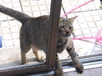 「ゲンが帰ってきたー!」大騒ぎで1階に下りる。「イレロー」「イレロー」とガラス戸の向こうで鳴いている。まったく現金なやつだ。イママデドコニイタンダヨウ。あー帰って来てよかった。