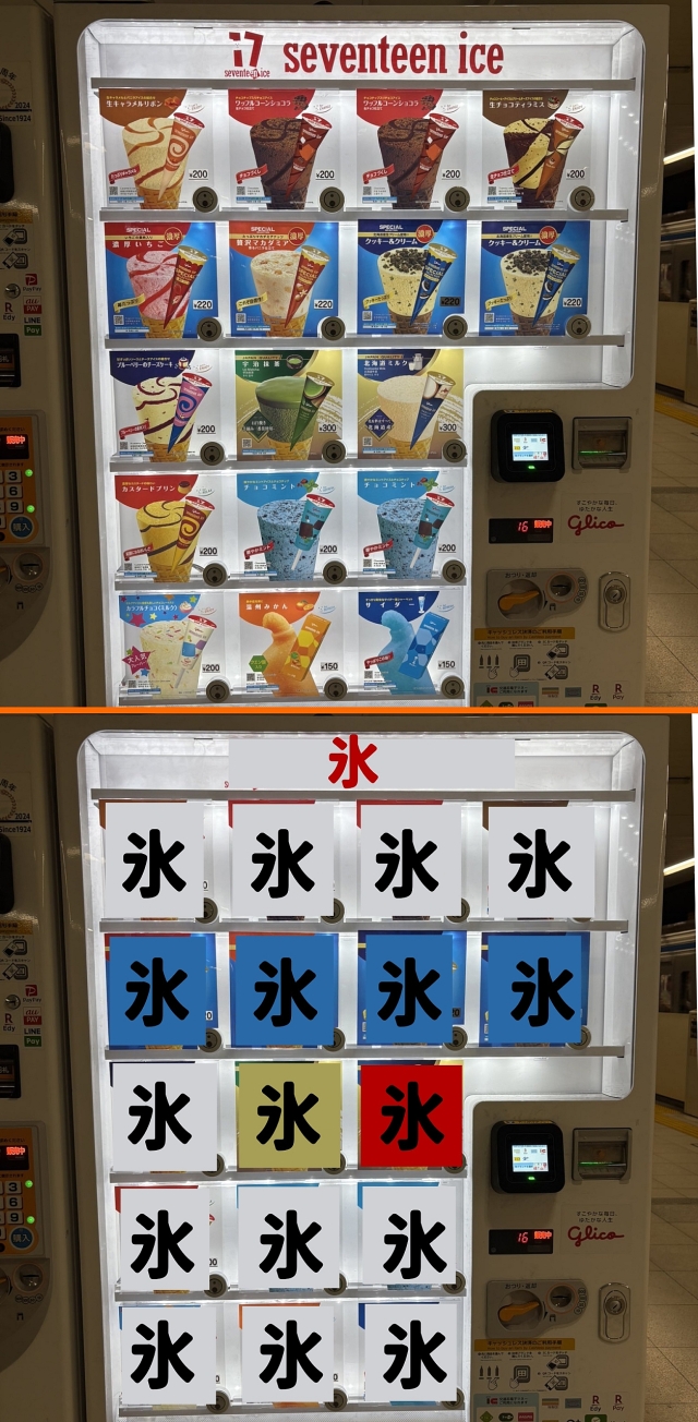 看板を漢字1文字に置き換える試みは、街以外の場所でやっても面白い。例えば、セブンティーンアイス。