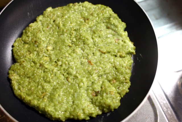 多少固まればいいかなと思ったんだけど、タンパク質の効果なのか、わりとしっかり固まって板状の食べ物になりました。肉や卵のタンパク質は熱で固まるけど、ホエイプロテインも熱で固まるんですかね。