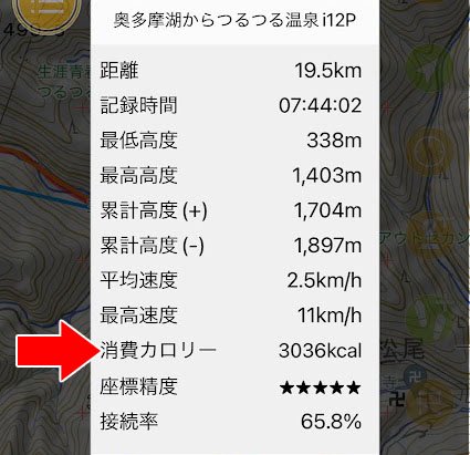 最終的には17時40分にゴールのバス停に着き、消費カロリーは3000を超えていました。