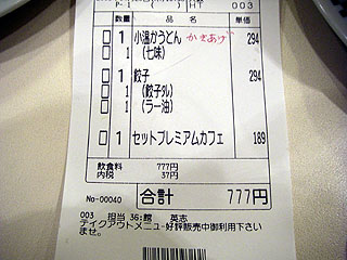 表を見ていただければ判るとおり、280円のものを2つ、180円のものを1つで合計が740円になります。740円の消費税が37円なので、合計777円になる計算です。