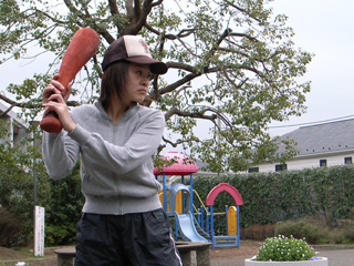 ひとりで公園で微調整しながら撮っていたので、どうにもへんてこなバッティングになった。いや、そんなことが理由ではなく、もとからいろいろ「なってない」からだろう。だいいちバットの握り方は正しかったのかどうかさえ、よくわからない。