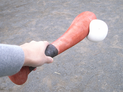 一晩乾かしてできた、名づけて「即戦力養成バット&ボール」だ!受けてみよ!