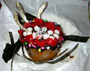 ひとこと:「かわいいケーキ」と「グロいケーキ」は紙一重だと思います。しかしそういうものほど、意外に美味しかったりすると嬉しいものだと思います。