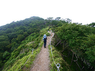途中まで暑くて辛い登りだが、三ノ塔を過ぎると岩場あり、鎖場あり、崖に掛かる橋ありで楽しい。山頂には鹿もいる。
