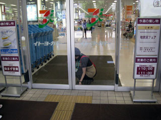 朝のスーパーにやってきた。開店10分前。2重になっている自動ドアのうち外側はもう開いていて、内側のドアの前に20人くらいの人が待っている。みなぎる緊張感…は、ない。みんな特に急いでいるわけでもなく、ただ手持ちぶさたに過ごしているぼんやりした空気だ。