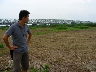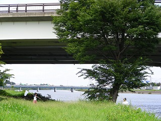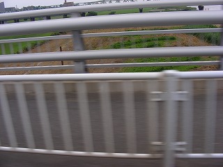 帰り際、車の窓からトリデを観察。橋の欄干で読み取りづらいが、写真では「リ」の字が横になっているのがなんとか隙間に読み取れるだろう。