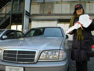 写真は一足飛びにでかい車のキーを受け取った乙幡さん。あ、もしかして乙幡さんならドライバー切り出せるかも? |