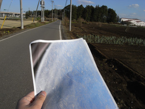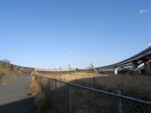 飛行機から撮った写真を持って実際に行ってみた。ぷっつり切れていたように見えた道路は造りかけだった。ループしている道路の内側は道路に囲まれた円形の土地だった。
