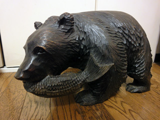 自宅に工藤さんのお父様からいただいた大きな木彫りの熊があるのですが、これがパソコンだったらかっこいいと思います。 机の上に置いてある熊が実はPC。キーボードとマウスがつながっていて(マウスは鮭の形がいいでしょう)、ハードディスクのアクセスランプが目。 エラー音は「ガオー!」です。 なかをくりぬくのは心苦しいので、型をとってFRPで作ればできるだろうか。 そんなことをずっと考え中です。