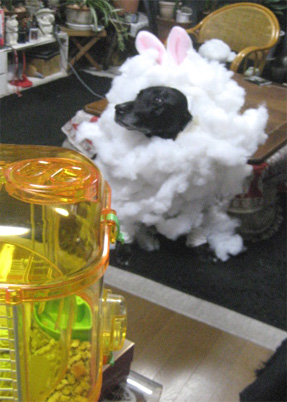 と、 このように、 今までもモモには いろいろなものになっていただいてきましたが、 今回は いつになく低クオリティー! といいますか、 いつになく化け物めいた仕上がりに なってしまったのでした。