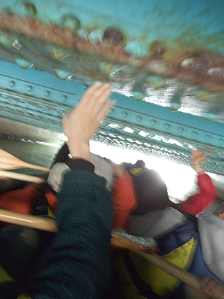 いや、というか、あとから聞いたところによると、本気の満潮だったこのボートでもくぐれなかったそうだ。水没じゃん。だいじょうぶか、茂森。