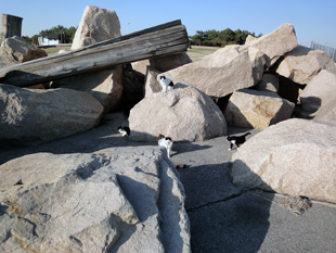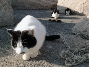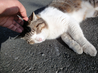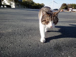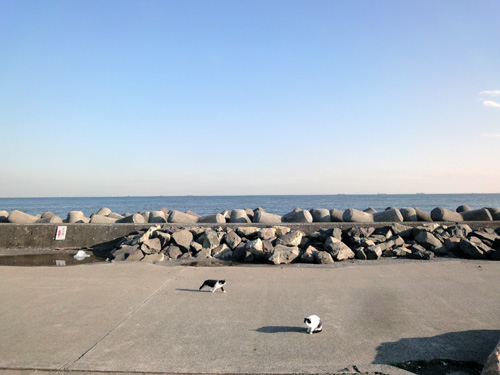 若洲は猫だらけで、しかも慣れている猫が多かった。キャンプや釣りをする人が多いのでえさをもらい慣れているのかもしれない。意外な猫スポットである。