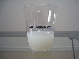 実験に使ったスコール(炭酸が抜けてる)と飲み比べてみると、スコールの方は甘みが強くて人工的な感じがするけど、この上澄みはそれをもうちょっと自然な甘さにした感じがした。