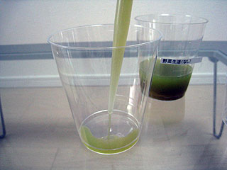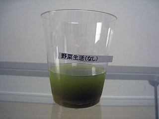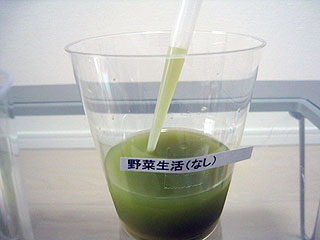 こうして「野菜生活の上の層」「野菜生活の下の層」の2つのドリンクを作る。分けて飲んでみようという魂胆だ。分けて飲んだほうがうまければ、イコール振らないほうがいい、ということ。