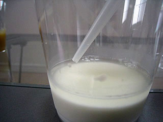 上澄みになっているのはホエーというものだそうだ。たまに食べ物の原材料欄をみると、マヌケな語感で気分を和ませてくれるアレである。wikipediaによると「高蛋白・低脂肪で栄養価が高い」と書いてある。さらにはパックに使われたりもするそうだ。それ、うまいんか?