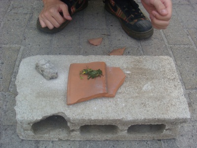 いろいろなモノをすりつぶして水に溶かしたところに想像力を加えることで、毒になったり薬になったりする遊び。何も起こってないのに、楽しい。たぶん本当の意味では、子供じゃないと楽しめないだろう。