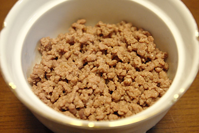 挽肉をめんつゆで炒めただけという簡単なそぼろなのだが、これがご飯に合うのだ。でも一気に食べるとそぼろが気管に入ってむせる。同じように炒り卵をつくってもおいしそう。