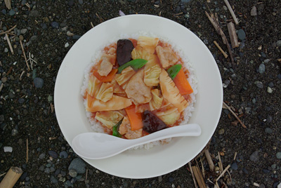 準備している間にも上空で2羽のトンビがホバリングしながら「ピーピョロロロ」と鳴いていた。ごちそう来たよ!と仲間に告げていたのかもしれない(実際は馬鹿が来たぞ、と言いふらしていたわけだが)。