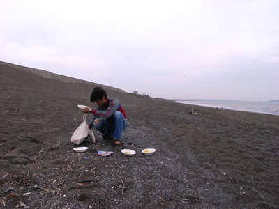 この海岸は週末になるとバーベキューや海遊びの家族やカップルでにぎわう。そんな団らんを切り裂くかの勢いで食料がトンビに奪われ続けているという。今回の企画にはもってこいの場所だ。