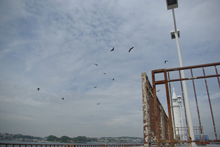 多くのトンビが舞う堤防の先へと場所を移すことにした。この堤防は釣り人が多く、そのエサや釣れた魚を狙ってトンビが集まってくるのだ。