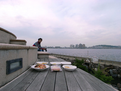 ヨットハーバーの近く、見晴らしのいいスポットに陣取りさあ後半戦のスタートだ。果たしてトンビはどの油揚げをさらっていくのか。