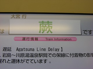 埼玉県にある蕨(わらび)市。電車の駅にも「蕨」という駅があります。この「蕨」という字が難しすぎて、次駅を示す車内電光掲示が表現しきれず、字がつぶれてしまっているという話を聞きました。そういうわけで用もないのに蕨に行ったのですが、そこで見たのは電車が新型になっていて詳細までばっちりと表現された「蕨」でした。他にもせつなくなってる字を集めて記事にしようと思ったのですが、なかなか見つけられず保留中です。
