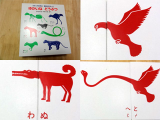 むかしネットで見て探していた本。ずっと品切れだったのですが、最近になって古本が出回っていたので買いました。 動物のあたまと胴体が別々のカードになっていて、組み合わせることで意外な動物が現れます。 いっしょに合成される名前もまたいい響きです。 「へと」と「わぬ」がお気に入りです。