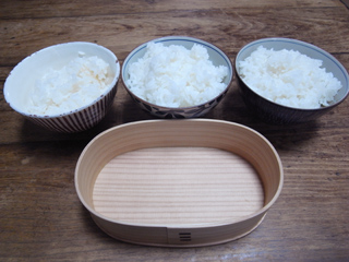 でも胃袋が拡張されたのか、あれ以来、ごはんの量が増えまして、ついには曲げわっぱにごはんだけを詰めて持っていくようになりました。おかずは別に用意して。もう腹いっぱいすぎます。どうしましょうか。