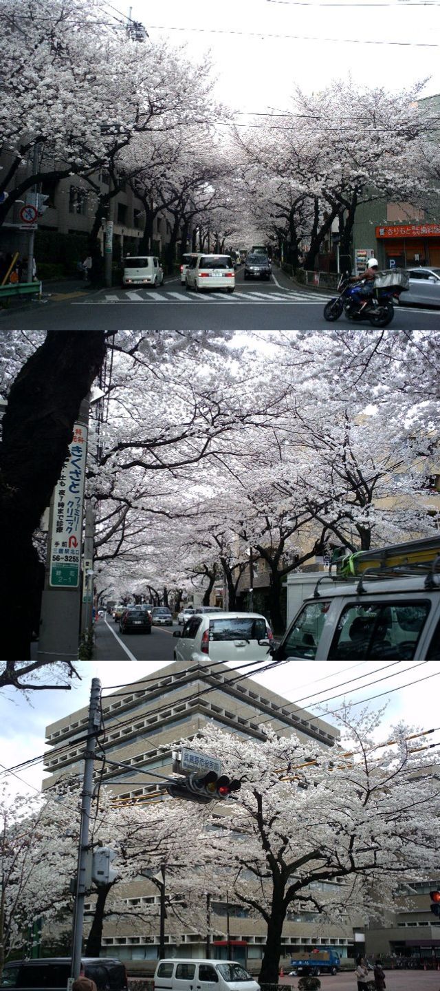 桜が咲いたのでまた行ってきました。 ちょうど満開ですごいキレイでしたよ。 もう少ししたら散ってピンクの絨毯に変わるんですよね。 写真上は武蔵野中央交差点から。 写真中は緑町交差点を少し行ったところから。 写真下は武蔵野市役所交差点からです。