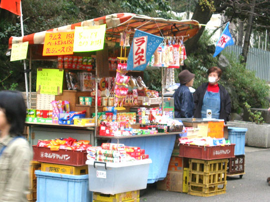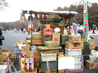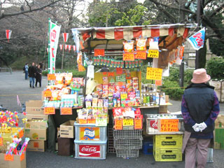 おばちゃんが園内に出してる露店は、おおむね缶ビール350円、缶チューハイ250円という安心価格。露店(つうか屋台?)はあちこちにあり。 飲み頃温度かどうかという微妙な問題はあるものの、酔っぱらってしまえばどうでもいいことです。