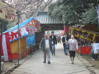 参道の出店は、10時30分〜22時ぐらいまで営業。でも4月10日(日)まで。 「毎年10日頃はもう散っちゃってんのヨ! あと1週間延長できたらいいんだけねえ。今年はホントさんざんだった」 と愚痴るおばちゃん。 えーそうなんだー。 散り際にまた来ようと思ったのにナ〜。