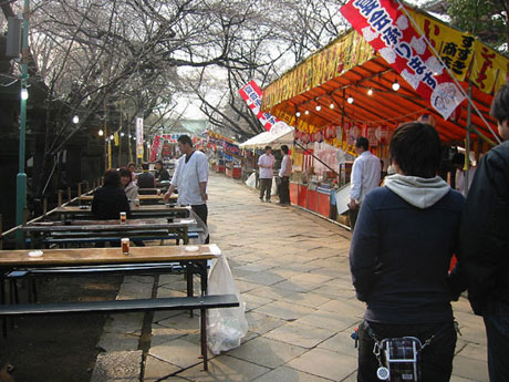 ここは大阪焼やいか焼、もろこし焼等々、縁日仕様でいろんなものを売ってました。 とはいえ「氷結」が500円というのは…サンクスなら147円だよ!? しかし花見時期の広小路付近は、ラッシュ時の山手線車内ばりの大混雑。公園〜サンクスの往復に30分以上かかったことあります。