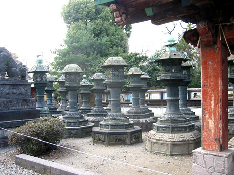 ……灯籠の展示会場ですか? 参道を業者貸しするためにどかしてあると見た。