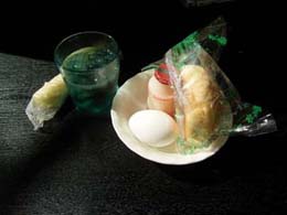 この店、実は入店した全員にもれなくメロンパンとゆで卵とヤクルトをくれるのだ。あとは飲み物さえ注文したらモーニングセットが出来上がるという仕組み。いわば強制モーニング。僕は飲み物にコーヒーを注文して320円だった。飲み物以外は純粋にサービスということか。すごいや。