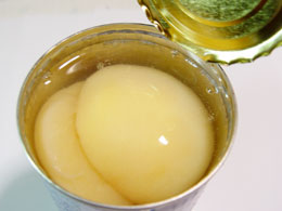 病気にならないと食べられない2大ごちそうのひとつ(もうひとつはレディーボーデン)、桃缶。シロップもおいしい。飲んでみる。