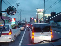 「じゃあ、これから新座に向かいましょう」 18時15分、荷物を積み終えた千葉さんが再びハンドルを握り新座に向けて463号線を走る。