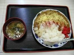 ここではチーズカレー。カレーの上にとろけるチーズが載っている上に、添えられているフランクもチーズ入りというこってりめのメニュー。とりあえず食べるが、朝食としてはかなり重い。