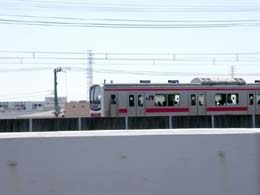 市川PAに向かう途中並走する電車。ちなみに市川PAは東関東自動車道からの乗り入れでないと入れない。