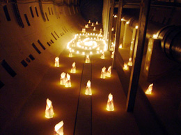 今回のイベントでは「やすらぎトンネル」と称してロウソクで照らされていた。暗いのでシャッター速度を遅くして撮っているため、僕の輪郭がぼけて不気味な写真になってしまった。