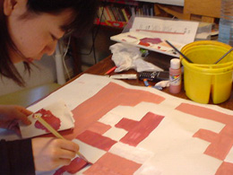 パソコン画面の見本にそって塗るだけの単純作業で、自分自身いまいち今どの部分を塗っているのかが分からない。