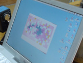途中から手伝ってくれた母はパソコンに写る見本画面を見て色選びをしきりに気にしている。